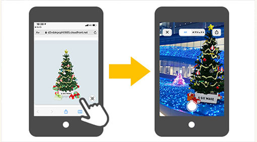 ボートレースのPR拠点である「SIX WAKE ROPPONGI」にてARフォトスポット『WebAR』のCG制作を担当致しました。 「SIX WAKE ROPPONGI」の芝生広場にAR起動用URLを記載したパネル看板が設置され、来場者は自身のスマホでURLへアクセスし、ARカメラで好きな場所にボートを設置して写真撮影が出来ます。 ※季節のイベントに合わせてクリスマスツリーやハートのバレンタイン装飾なども期間限定で実施いたしました。