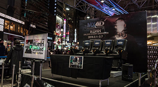KOHHの新作アルバム「Untitled」プロモーションとしてSHIBUYA109前に特設ブースを展開。 収録曲「I Want a Billion feat. Taka(ONE OK ROCK)」の360度映像によるMVを、MX4D®に乗りながらVRで鑑賞できる。 それに加えて、ソニーの最先端テクノロジー「ハプティクス技術」(触覚提示技術)を使ったハプティックベストを着用し、サブウーファー搭載のヘッドホン(Skullcandy Crusher360)も装着することで、体感+VRを全方向で体験するコンテンツとしてSNSでも話題に。 当社は、VRシステム設計 / MX4D®プログラム制作 / アプリケーション開発を担当しました。
