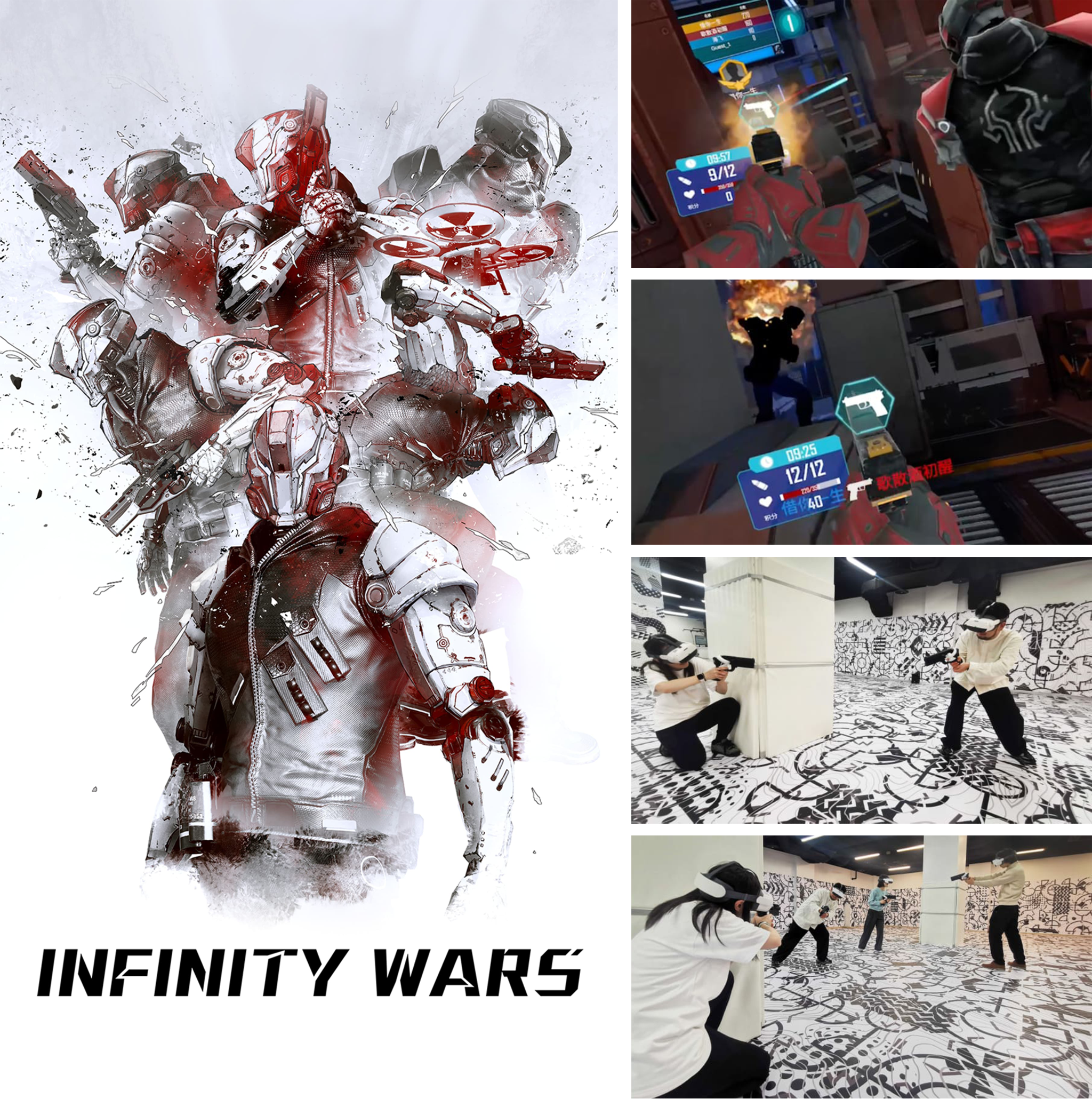 ■INFINITY WARS大型フリーロームVRシューティング。最大16名の大人数でサバイバルゲームのような対人戦を楽しめます。