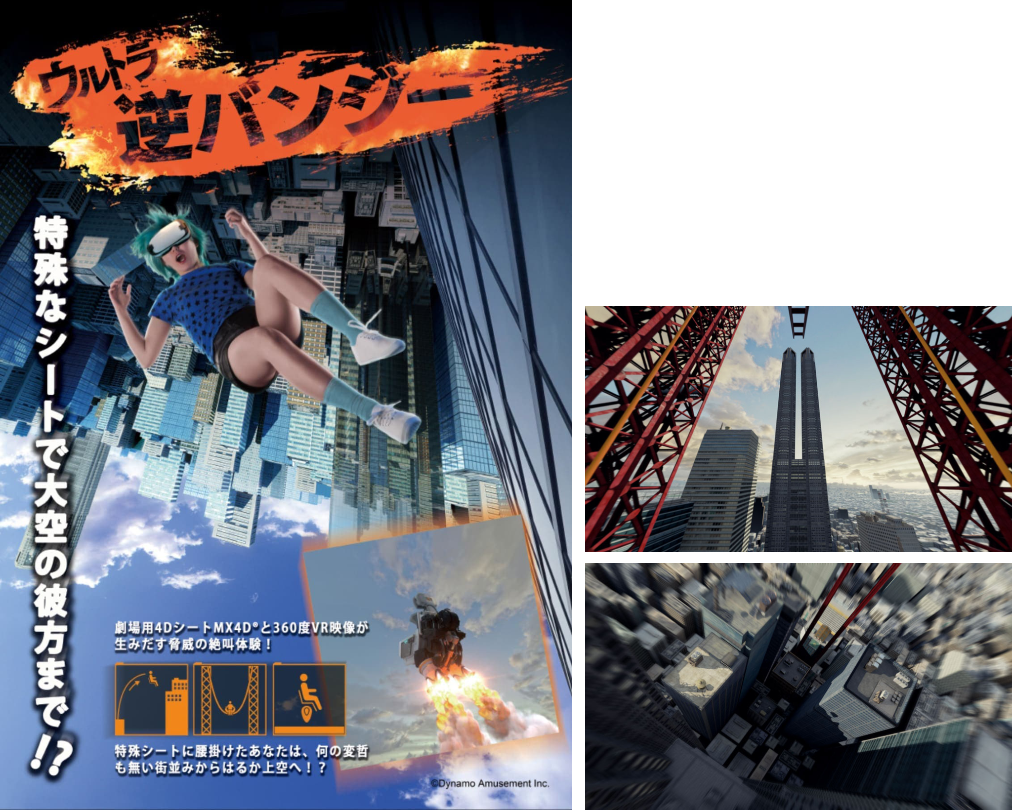 モーションシートとVR映像がシンクロし、風や振動といった特殊効果も合わさって、 ジャンプのスピードや重力などをリアルに再現し、迫力のジャンプ・落下・飛行が実現したライド型VRアトラクション。