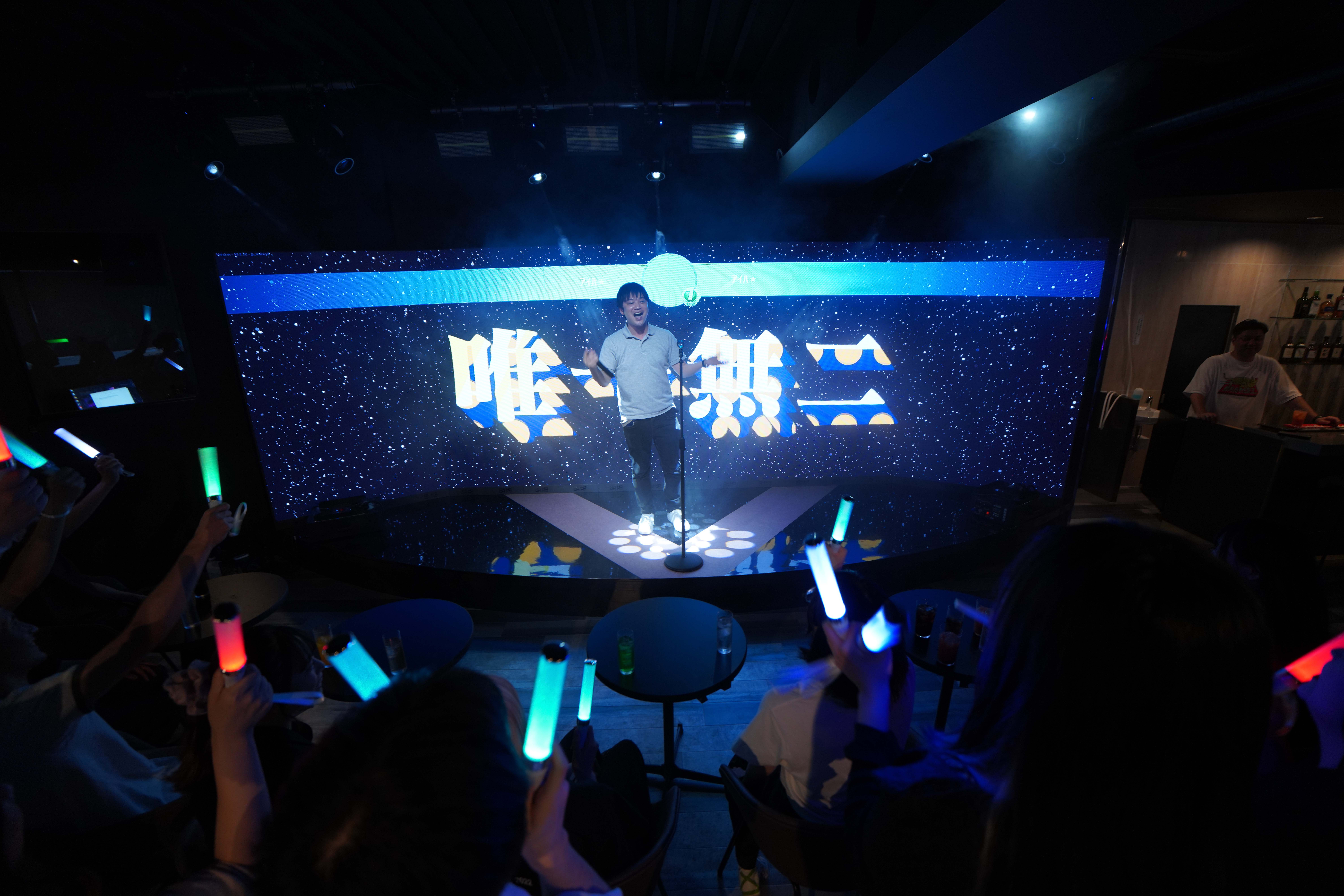 1. オープンステージで誰もが主役に店内中央のステージには、大型LEDと照明演出を完備。まるで本物のライブ会場に立っているかのような臨場感の中で、誰でも自由に歌ってパフォーマンスを楽しめます。