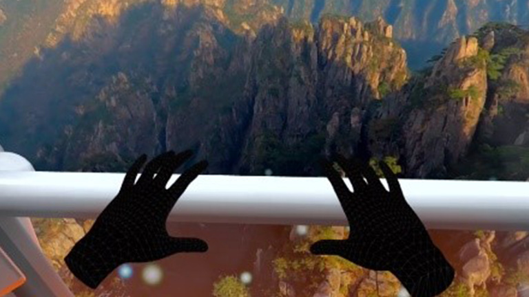 VR空間内にある手すりは現実に設置されている手すりと同じ位置に配置されているため、没入感を向上させ、またVRゴーグルを付けて動き回っても安全にご体験いただくことができます。